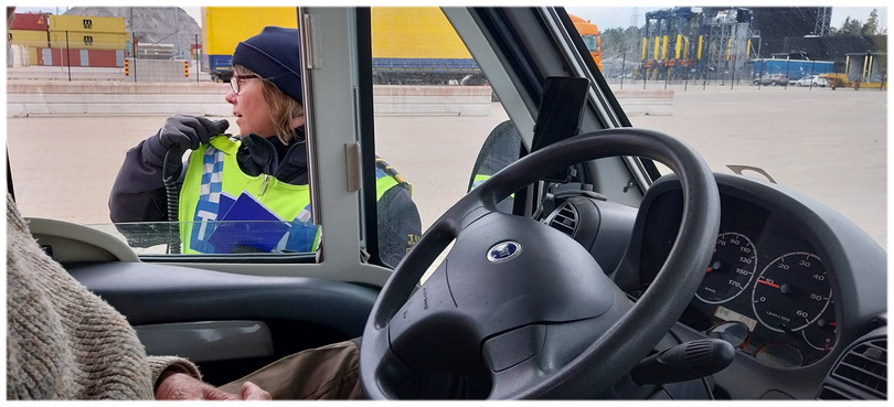 ![]() Wij waren vergeten de honden aan te geven wat bij elke keer moet als je Zweden in komt, de dame wilde wel even in de camper kijken |